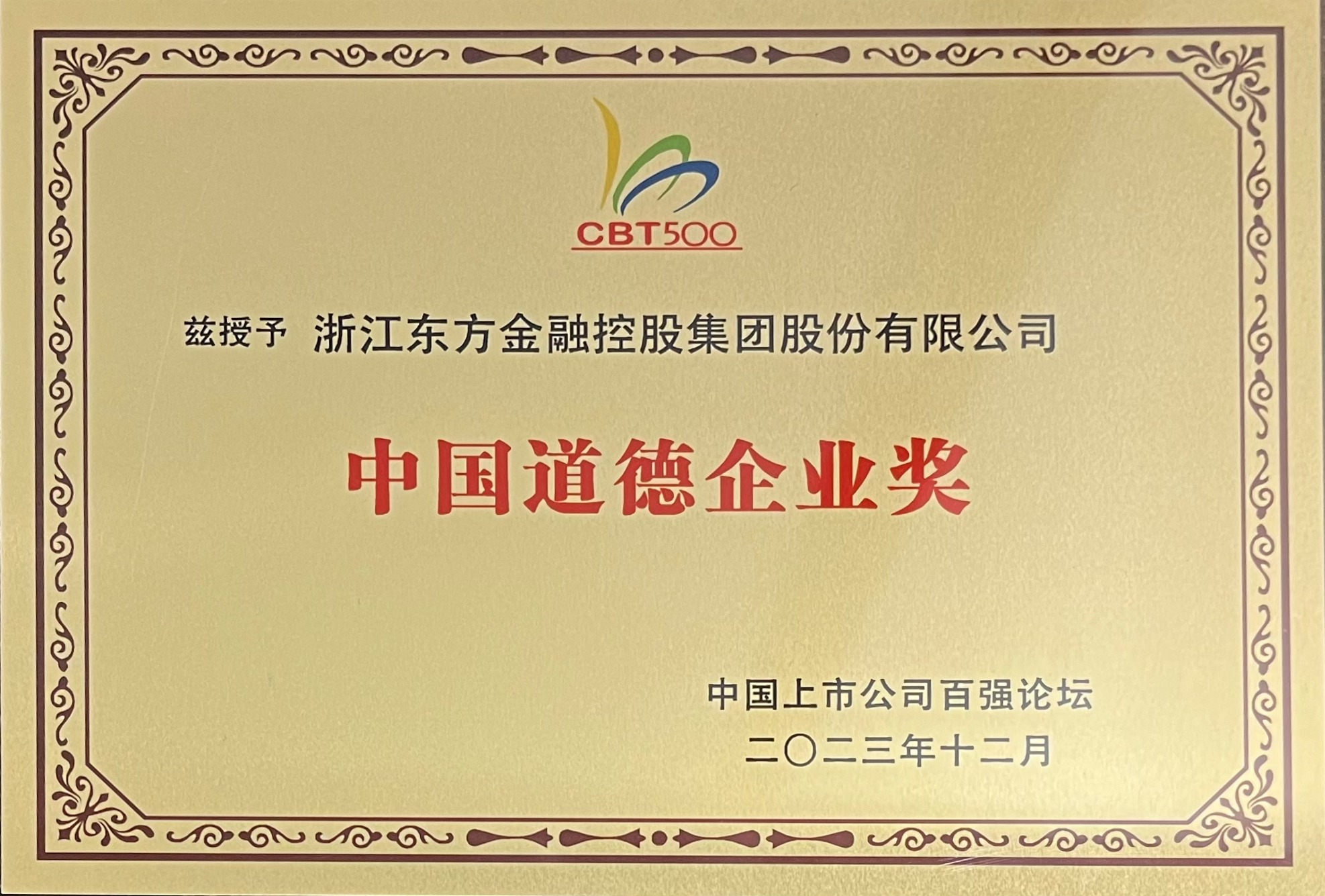中國道德企業(yè)獎由論壇組委會授予積極回饋股東和社會、重視環(huán)境保護、最具社會責任的上市公司。浙江東方作為國有上市金控平臺,始終心懷“國之大者”,堅守金融報國初心,勇擔金融為民使命,以高水平的綜合金融服務賦能實體經濟高質量發(fā)展。公司堅持黨建引領,深化國企改革,不斷提升公司治理水平,以高質量發(fā)展成果回饋股東。公司助力綠色低碳發(fā)展,積極發(fā)揮綜合金融優(yōu)勢,形成清潔能源、生態(tài)治理、綠色農業(yè)、綠色基建、綠色制造等綠色經營布局。公司推進普惠金融走深走實,通過結對幫扶服務鄉(xiāng)村振興,落地慈善信托,縱深推進“保險+期貨”,開展公益贈險。此次公司獲得“中國道德企業(yè)獎”也表明市場和社會對公司的肯定和認可。