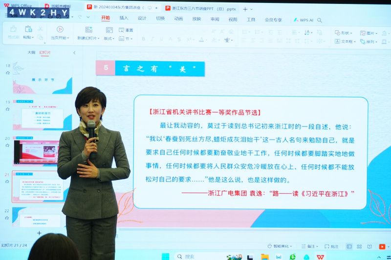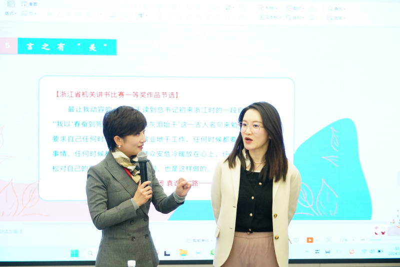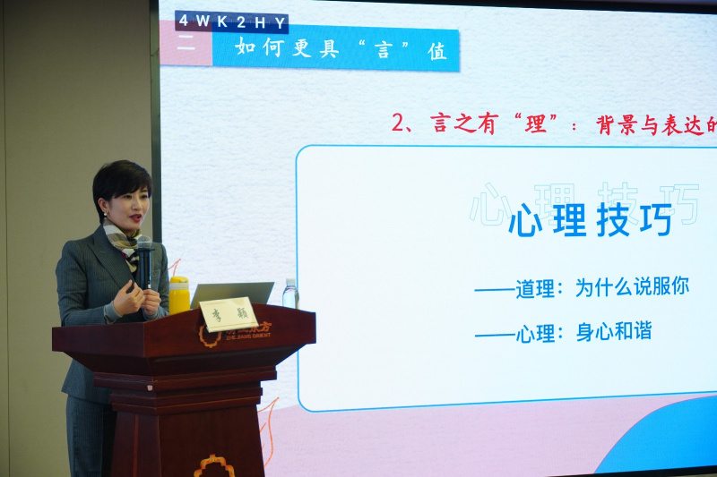 在魅力演說表達(dá)與技巧講座上,浙江工業(yè)大學(xué)播音與主持系教授李穎,就“如何提升女性演說表達(dá)技巧”進(jìn)行現(xiàn)場講授和互動(dòng),通過二十大黨代表姜麗娟的《下姜村的新變化》、浙江省微黨課比賽一等獎(jiǎng)作品山村支教女老師的《一個(gè)都不能少》、省直機(jī)關(guān)講書大賽特等獎(jiǎng)獲得者袁逸的《跟著總書記讀好書》等三篇女性優(yōu)秀演講范例解析,讓現(xiàn)場職工在紅色作品中堅(jiān)定信仰,從紅色文化汲取奮進(jìn)力量。交流互動(dòng)環(huán)節(jié),李穎教授從心理、情感、呼吸、禮儀等方面講授演說誦讀技巧,針對(duì)職工現(xiàn)場演說表演,給予點(diǎn)評(píng)和指導(dǎo),讓女性“她”力量更具“言”值。
